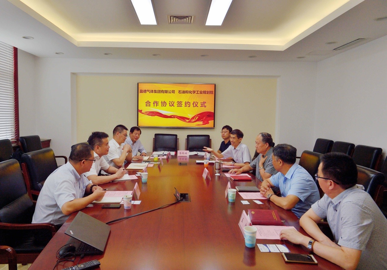 8月14日下午,石油和化學工業規劃院與盈德氣體集團有限公司合作協議簽約儀式在京舉行。顧宗勤院長會見了到訪的盈德氣體集團有限公司邱中偉董事長一行,并見證雙方合作協議簽約儀式。