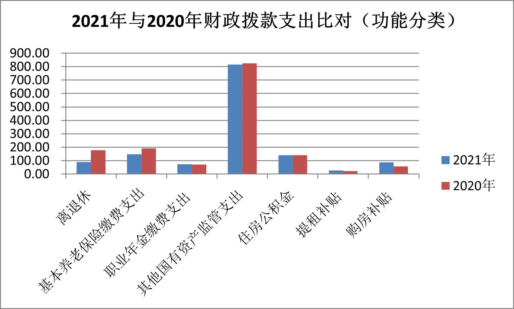 ⑶ 2021年度住房保障支出254.56萬元(住房公積金141.06萬元、提租補貼27.10萬元、購房補貼86.40萬元),2020年度住房保障支出220.89萬元(住房公積金141.06萬元、提租補貼22.35萬元、購房補貼57.48萬元),2021年度增加撥款33.67萬元。