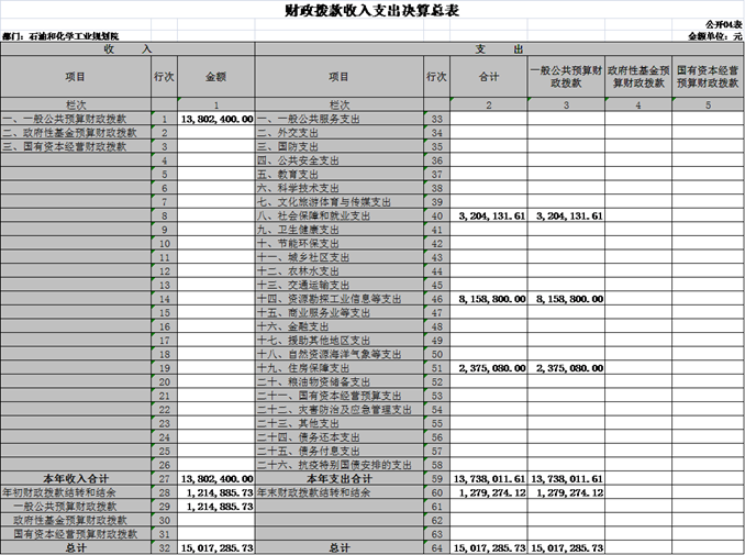 根據《中華人民共和國預算法》及其實施條例的相關規(guī)定規(guī)定,按照國資委2021年度所屬預算單位決算公開工作方案的要求,現將我院2021年度部門決算及相關內容公示如下: