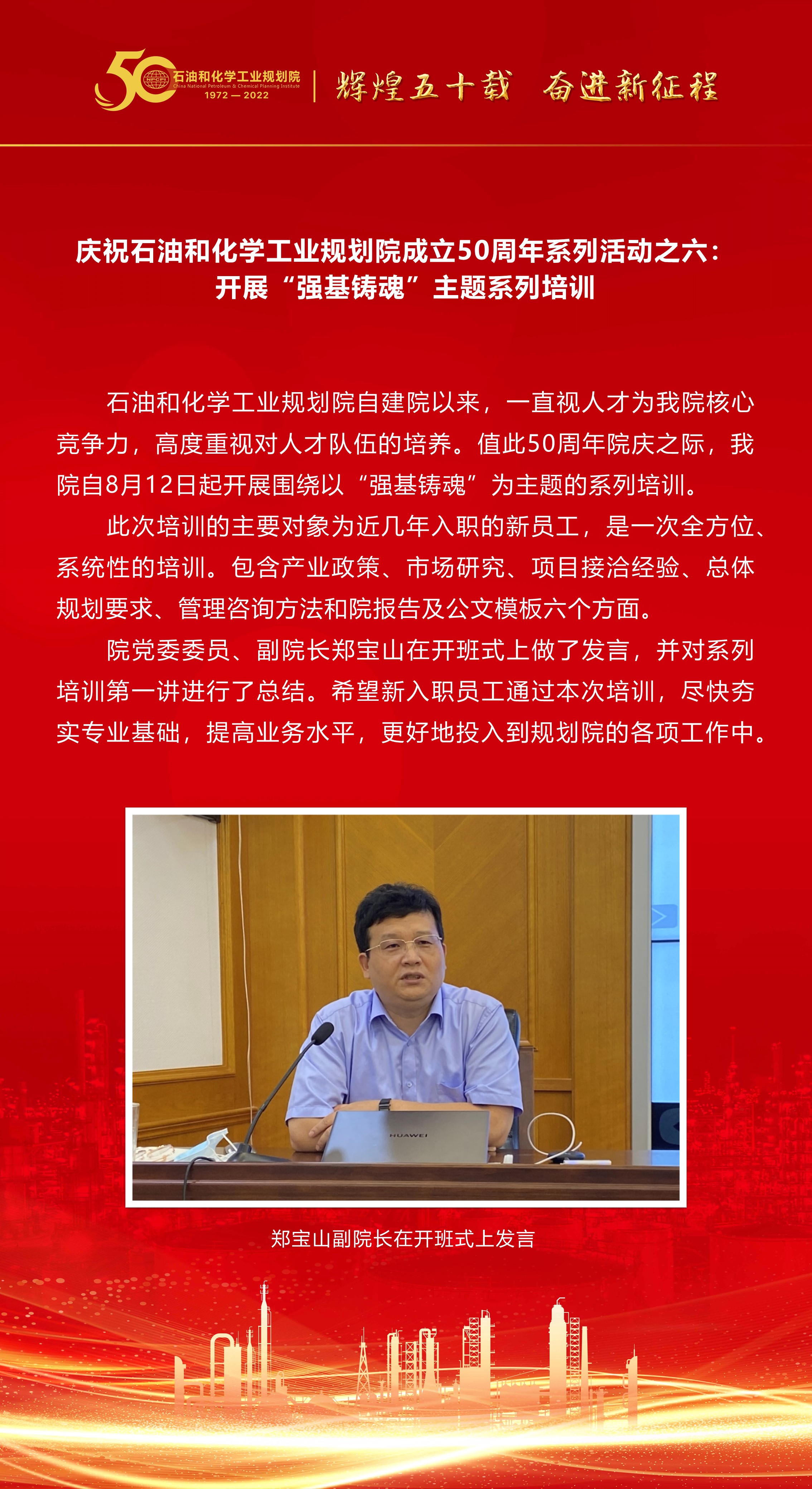 > 慶祝石油和化學工業規劃院成立50周年系列活動之六:開展“強基鑄魂”主題系列培訓