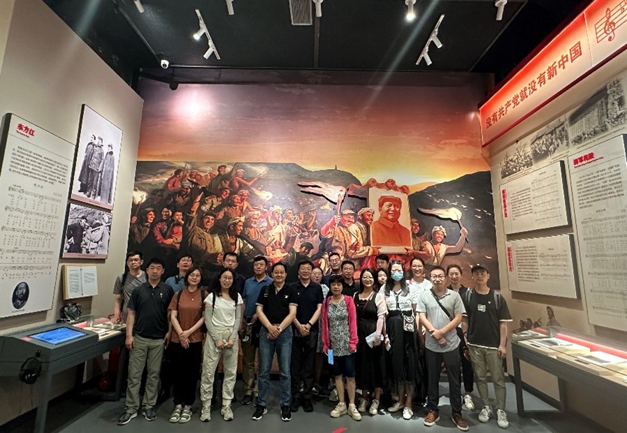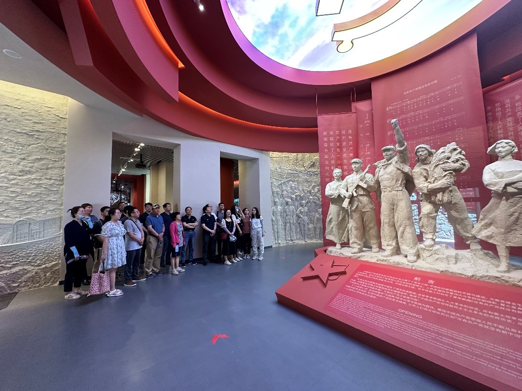 按照規劃院黨委主題教育工作安排,7月6日,院黨委書記、院長李君發帶領工程規劃處黨支部和財務處黨支部赴全國愛國主義教育示范基地--沒有共產黨就沒有新中國紀念館,開展“人民的心聲 歷史的旋律”主題教育活動。紀念館位于北京市房山區霞云嶺鄉堂上村,紀念館分為序廳、四個主題部分、“不忘初心”部分和結束語。“黨的創建和大革命洪流中的歌聲”“土地革命風暴中的歌聲”“為全民族抗戰吶喊的歌聲”“循著解放戰爭進程的歌聲”四個主題部分,著重呈現了革命時期涌現的歌曲,串起革命歷史和精神譜系。“不忘初心”部分,集中展示了新中國成立以來涌現的經典歌曲,力求讓觀眾伴著歌聲重溫百年黨史,生動闡釋“沒有共產黨就沒有新中國”的人民心聲和歷史旋律。紀念館利用藝術品創作、大型投影、場景復原、音像展示等多種方式呈現主題歌曲15首、一般展示歌曲71首,以及84個黨史故事、123首多媒體鏈接歌曲和資料,傾力營造“沉浸式”觀展體驗。