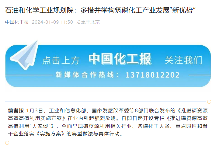 受工業和信息化部原材料工業司委托,2022-2023年石油和化學工業規劃院成立了專項工作組,進行了深入研究,全程參與了《推進磷資源高效高值利用實施方案》,石油和化學工業規劃院現就《實施方案》相關內容解讀如下: