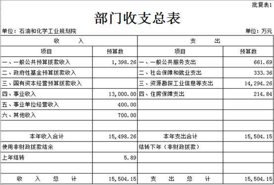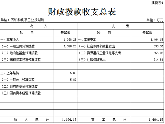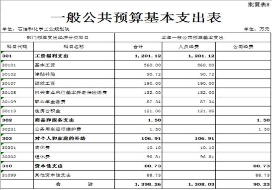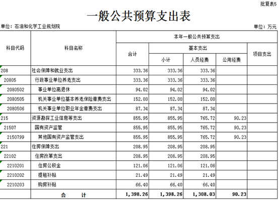 石油和化學(xué)工業(yè)規(guī)劃院部門(mén)預(yù)算