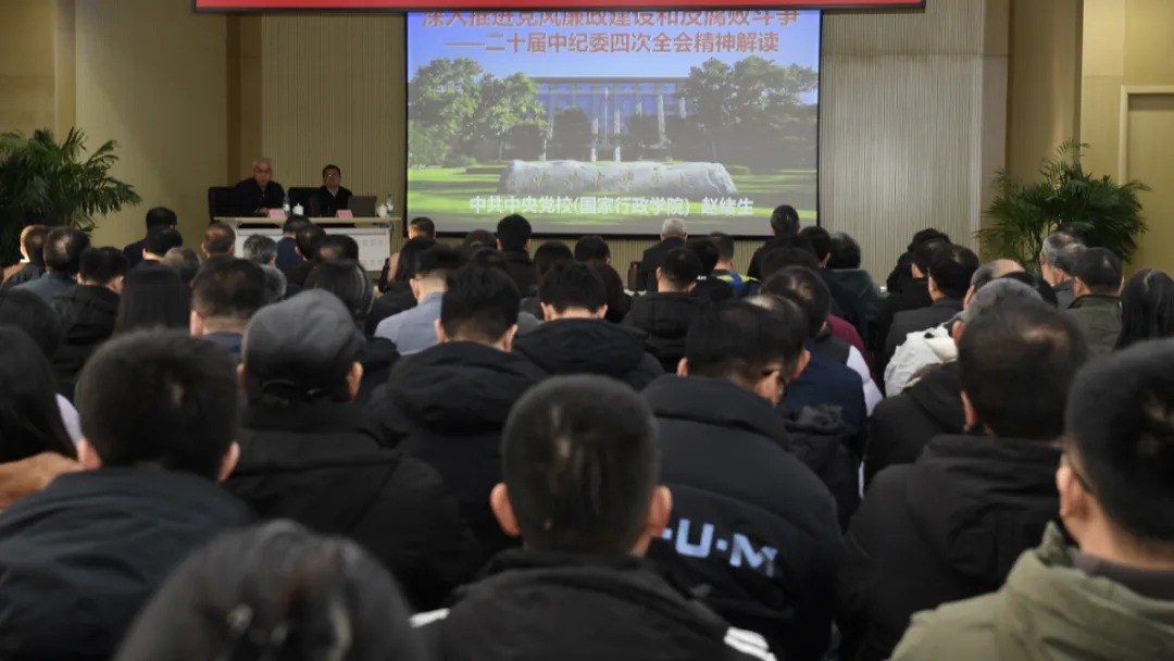 會上,中共中央黨校(國家行政學(xué)院)教授趙緒生作《深入推進(jìn)黨風(fēng)廉政建設(shè)和反腐敗斗爭——二十屆中央紀(jì)委四次全會解讀》輔導(dǎo)報(bào)告,介紹了二十屆中央紀(jì)委四次全會總體概況,宣貫了習(xí)近平總書記關(guān)于黨的自我革命的重要思想、改革精神和嚴(yán)的標(biāo)準(zhǔn)正風(fēng)肅紀(jì)反腐等內(nèi)容。