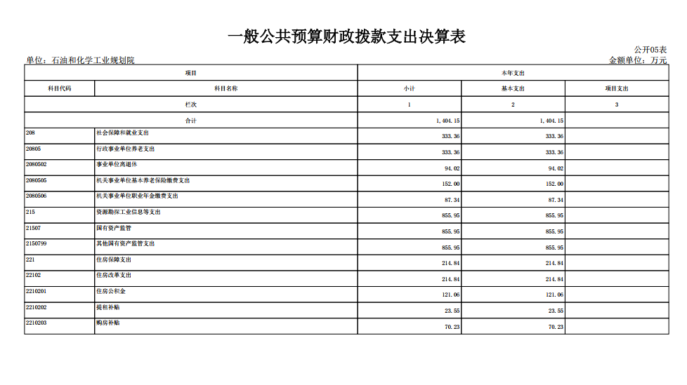 2024年度財(cái)政撥款支出1404.15萬元,較2023年撥款減少112.13萬元。具體情況如下: