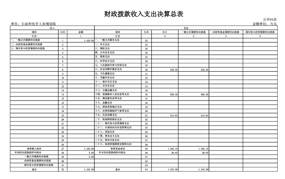 根據(jù)《中華人民共和國預(yù)算法》及其實(shí)施條例的相關(guān)規(guī)定規(guī)定,按照國資委2024年度所屬預(yù)算單位決算公開工作方案的要求,現(xiàn)將我院2024年度部門決算及相關(guān)內(nèi)容公示如下: