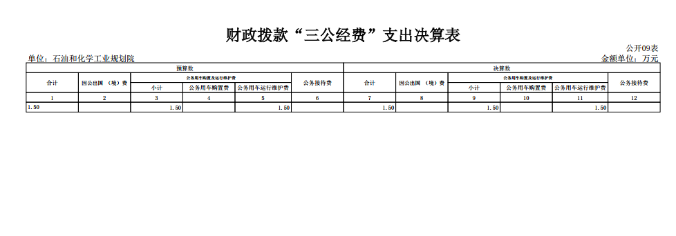 2024年決算實(shí)際撥款為:1.5萬元,其中:因公出國費(fèi)0.00萬元、公務(wù)用車運(yùn)行費(fèi)1.5萬元、公務(wù)接待費(fèi)0.00萬元。預(yù)決算撥款持平。