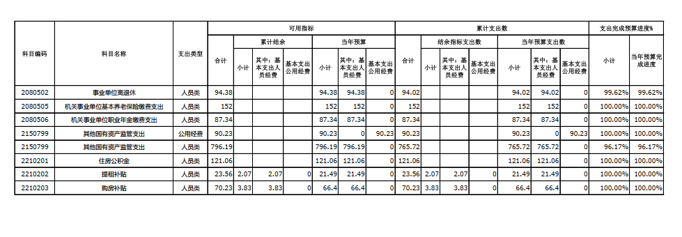 如上圖所示,我單位2024年度預(yù)算執(zhí)行進(jìn)度為97.85%,情況良好。除“離退休費(fèi)(完成率99.62%)”和“其他國有資產(chǎn)監(jiān)管支出-人員類(完成率96.17%)”兩個(gè)項(xiàng)目,因年末新增追加投資已無法按時(shí)支付外,原預(yù)算計(jì)劃完成率為100%。