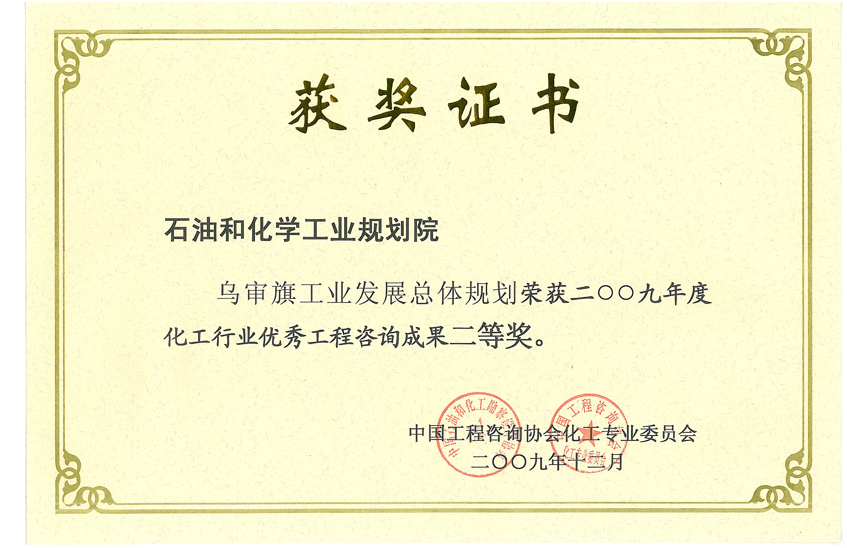 化工行業優秀工程咨詢成果二等獎(烏審旗)