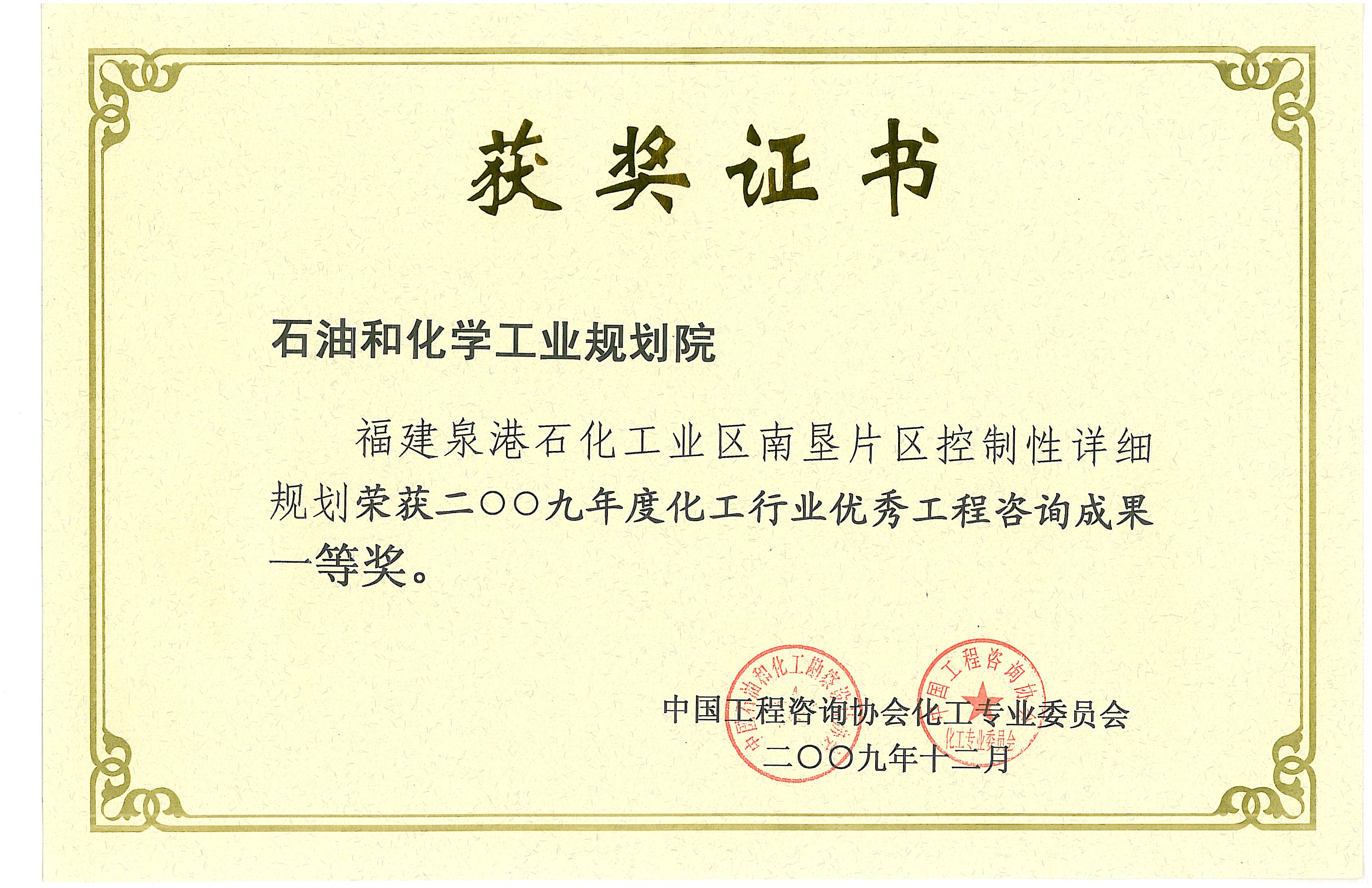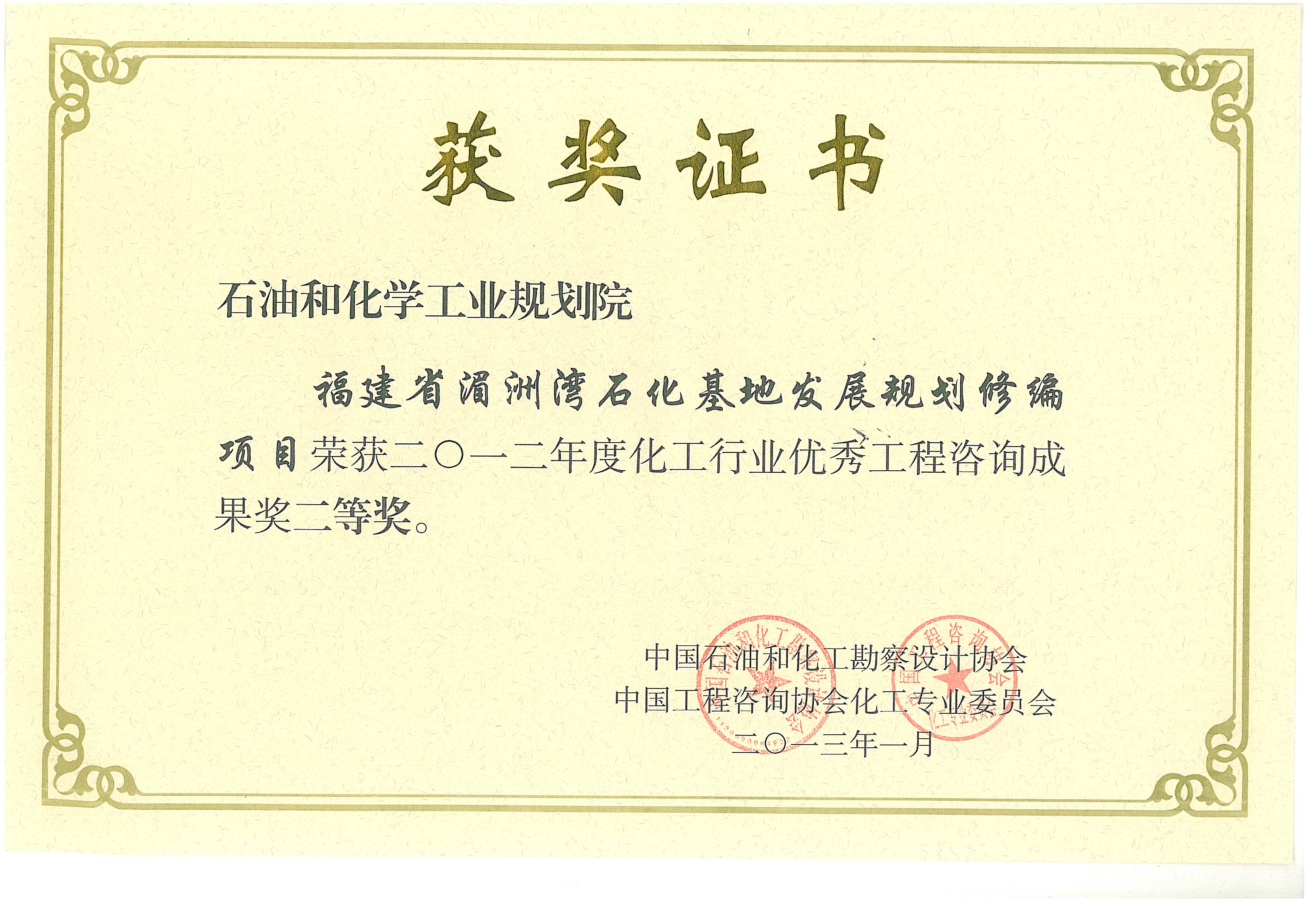 化工行業優秀工程咨詢成果二等獎(湄洲灣)