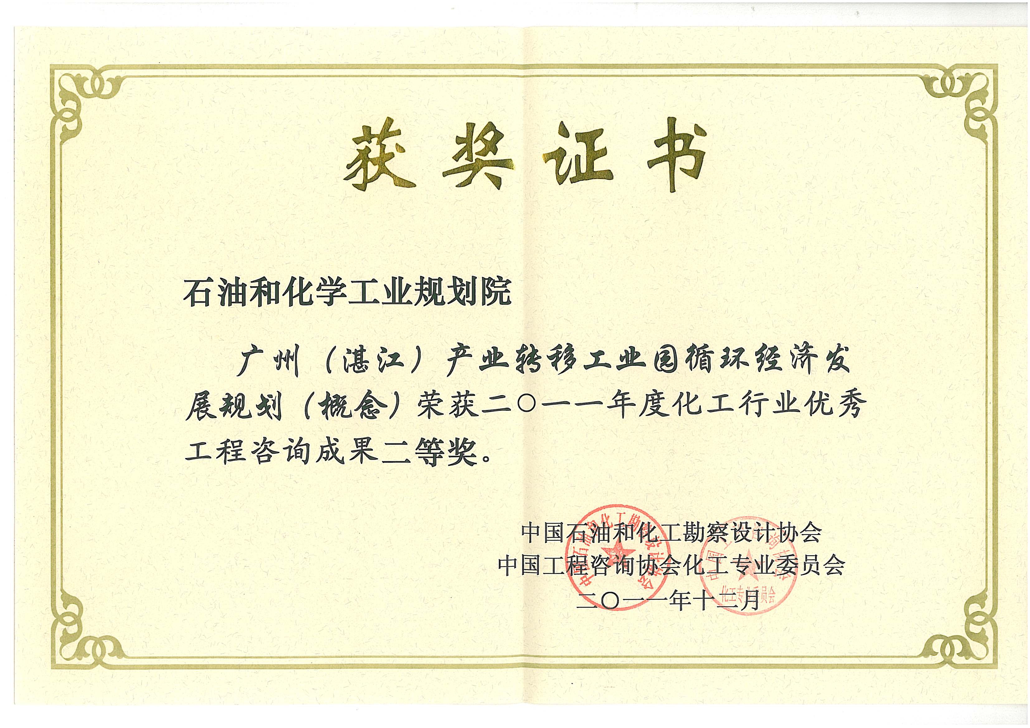 化工行業優秀工程咨詢成果二等獎(湛江)