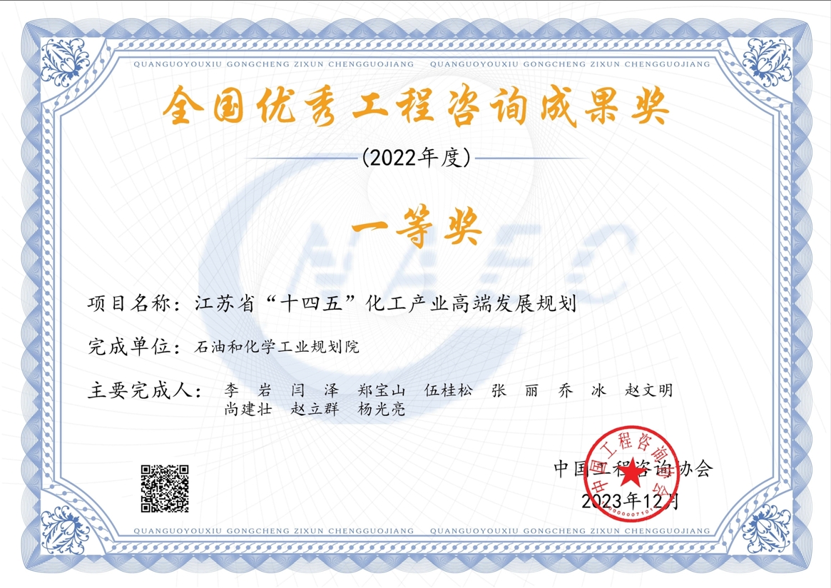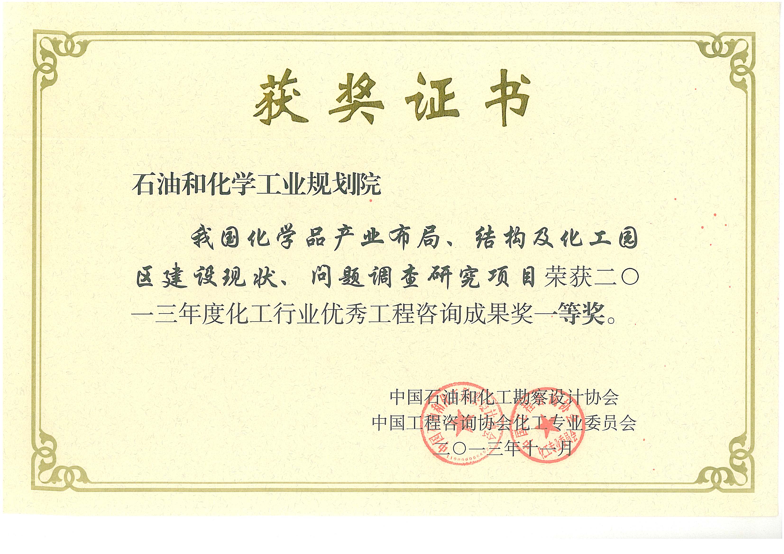 化工行業優秀工程咨詢成果一等獎(化學品項目)