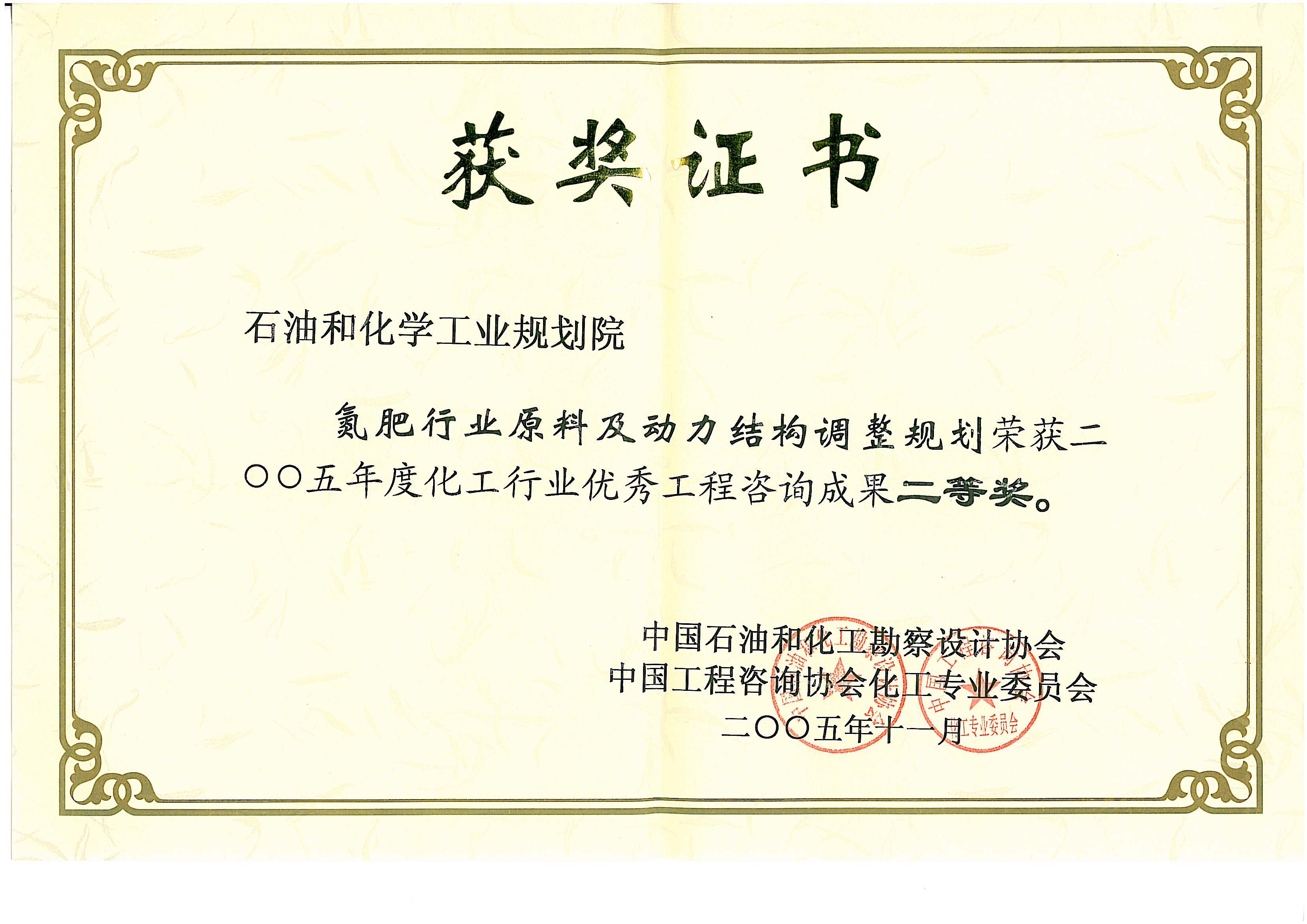 化工行業優秀工程咨詢成果二等獎(氮肥專題)