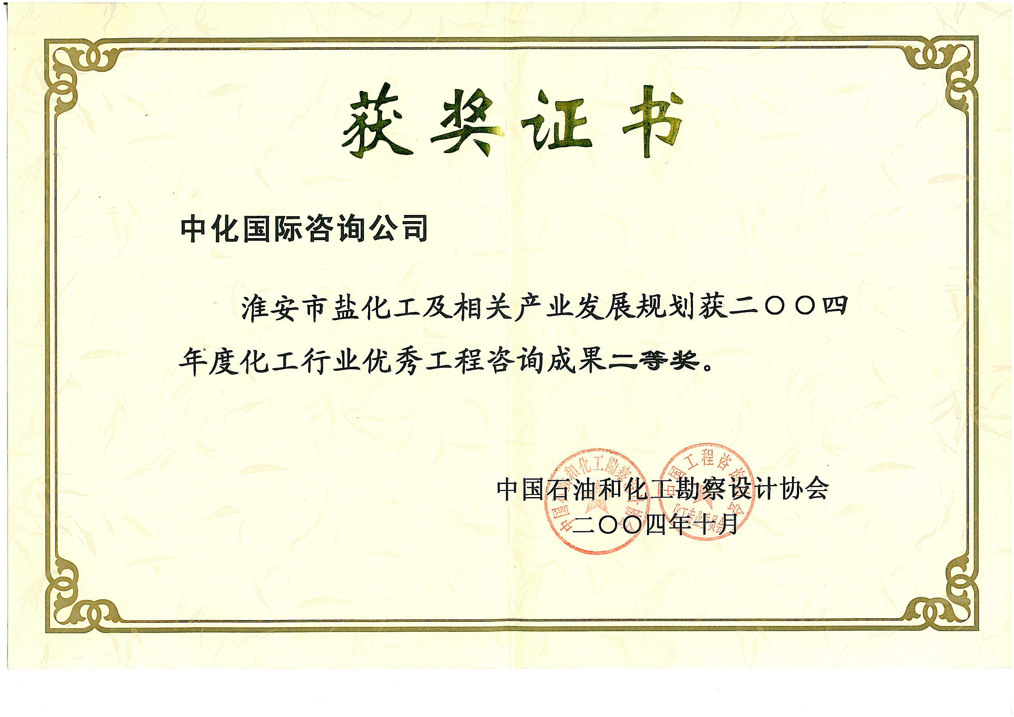 化工行業優秀工程咨詢成果二等獎(淮安規劃)