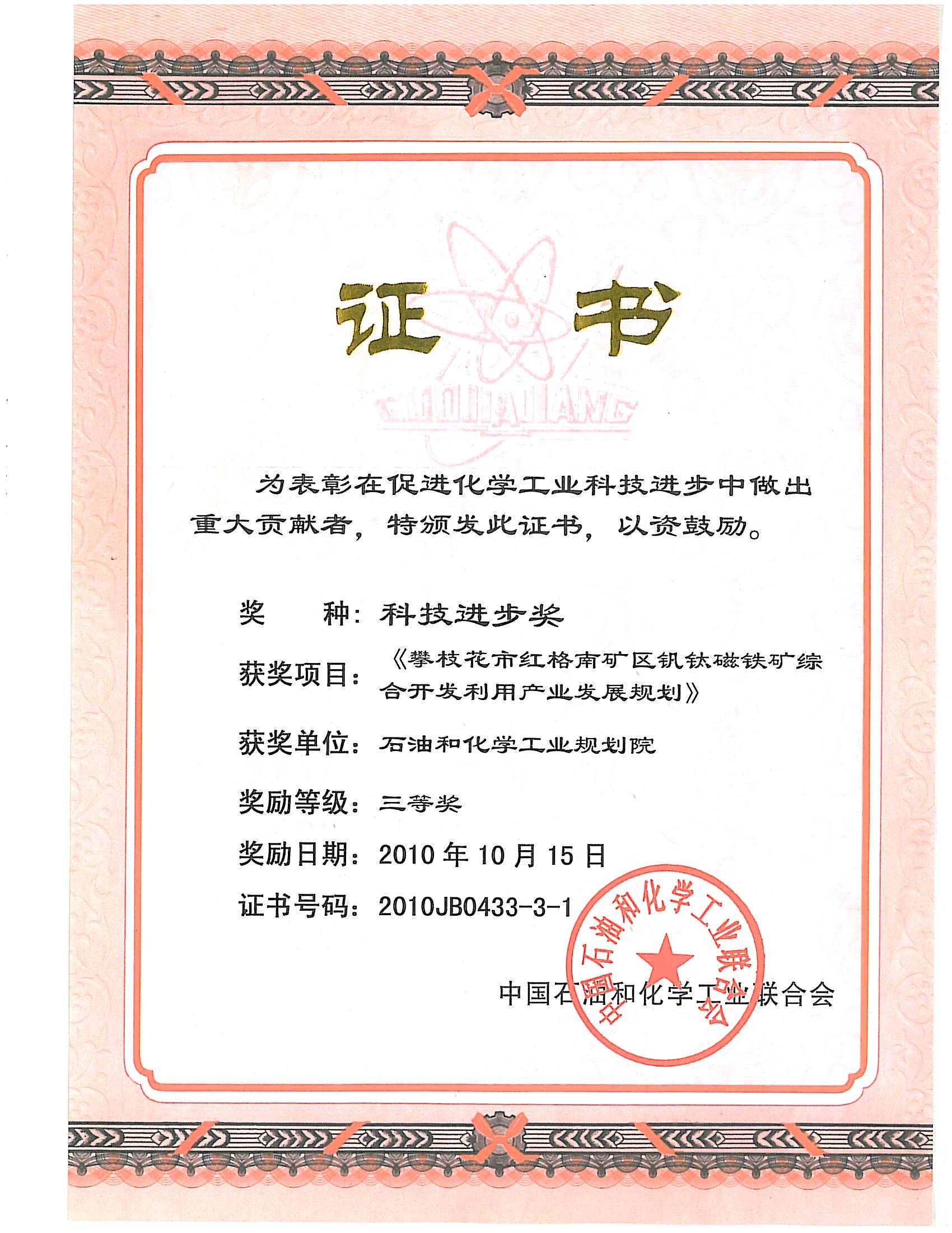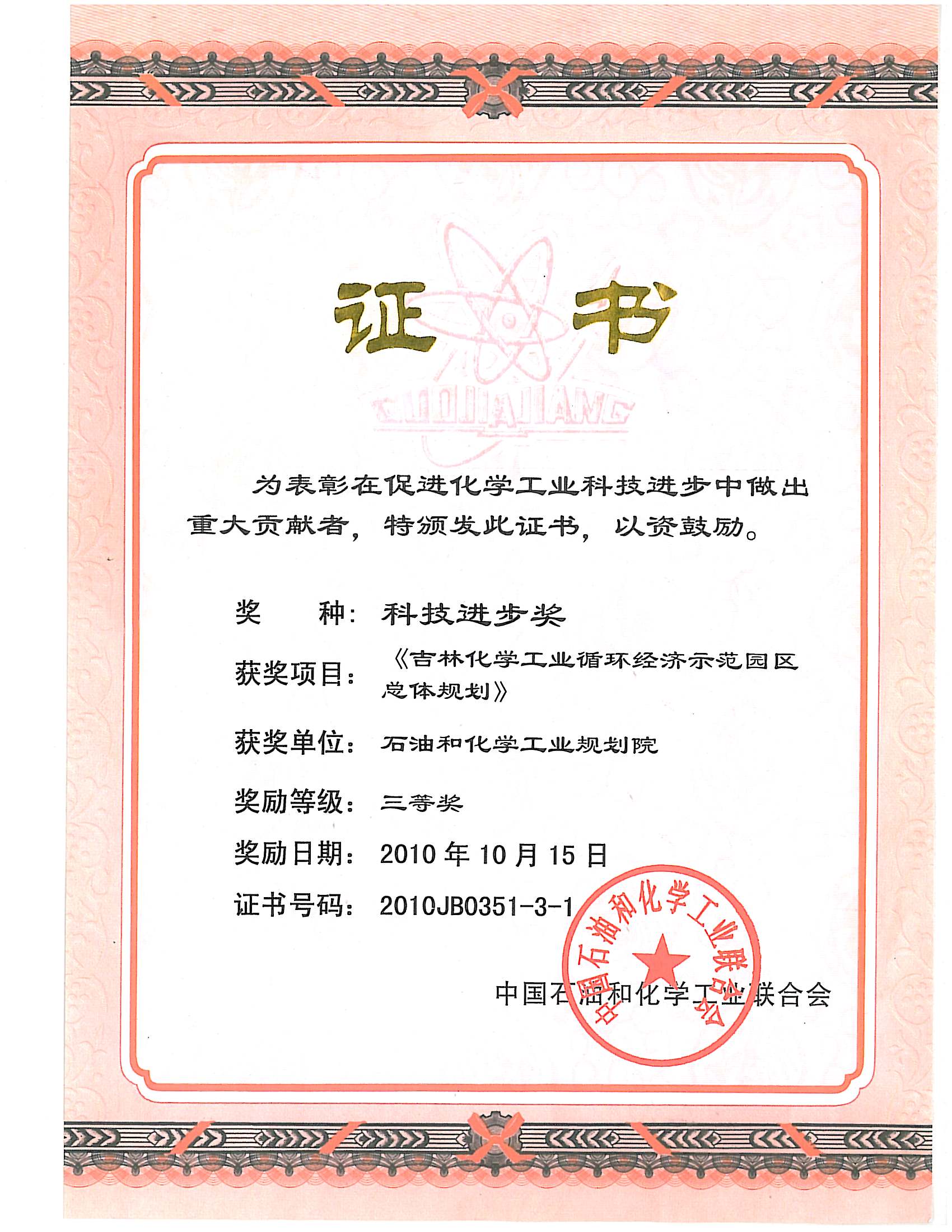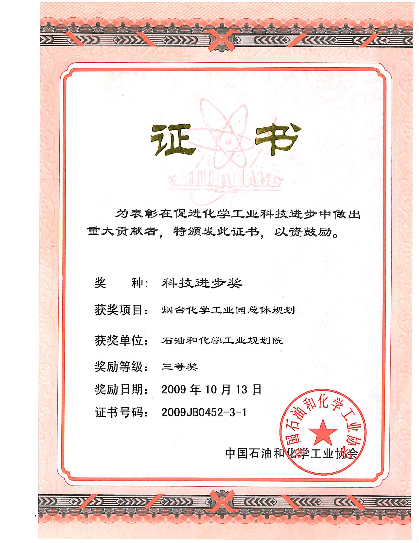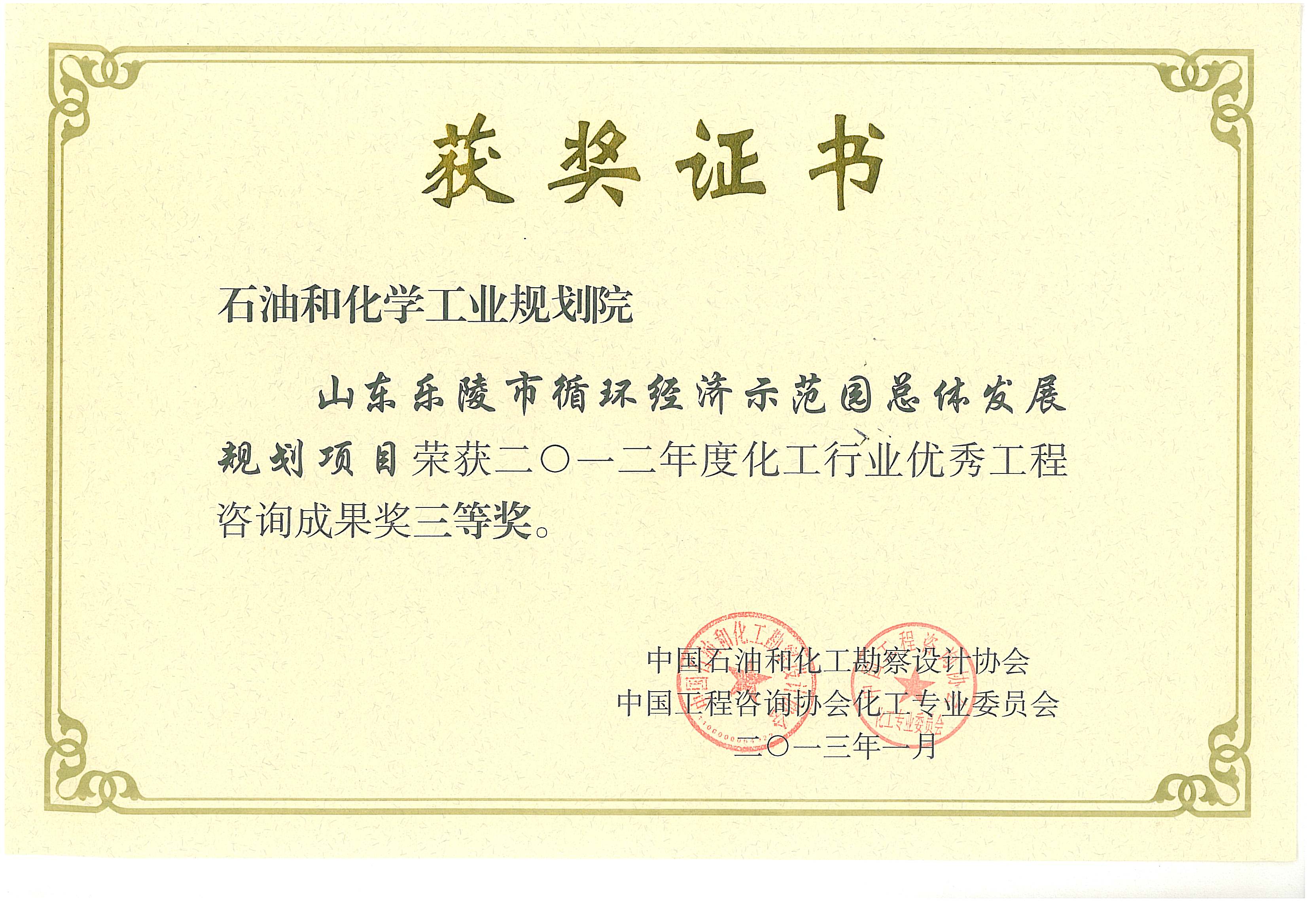 化工行業優秀工程咨詢成果三等獎(樂陵)
