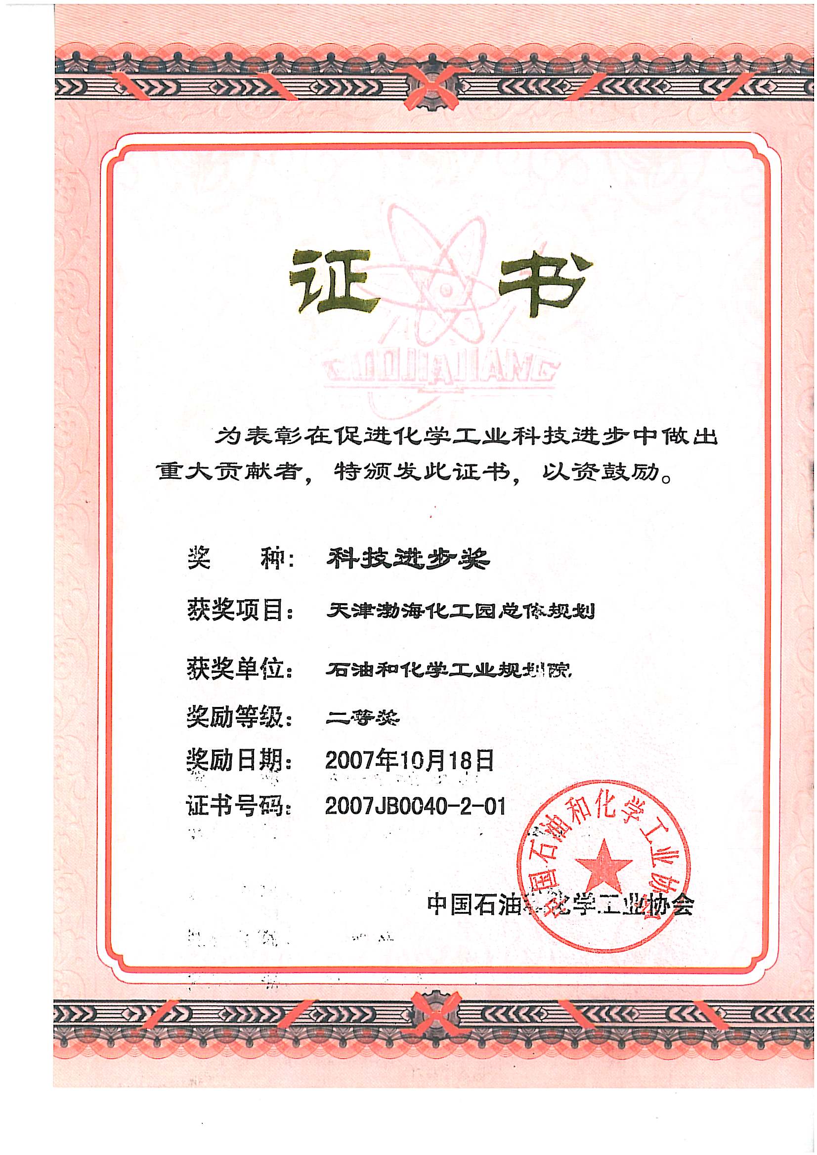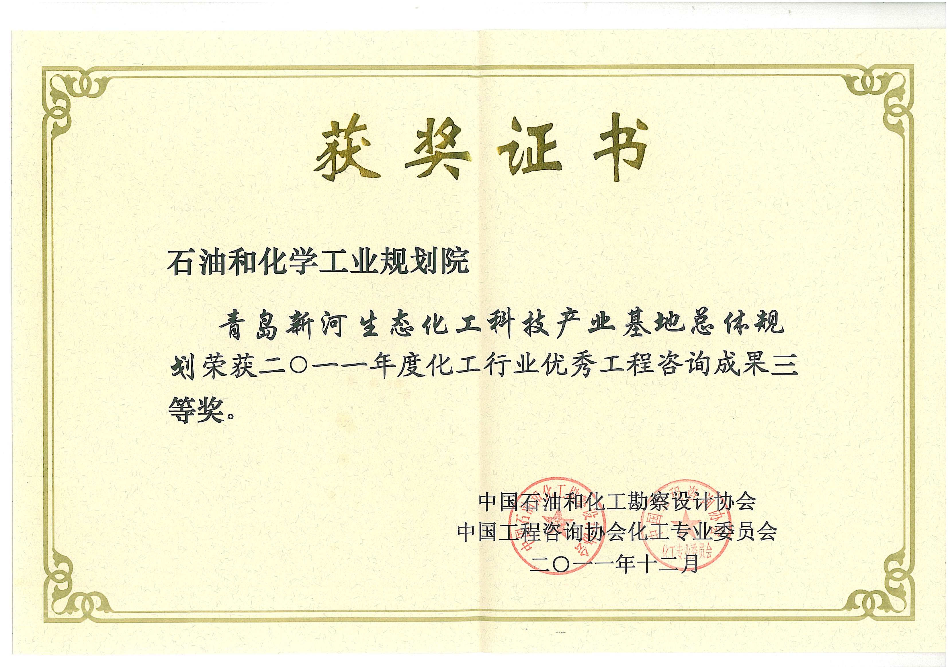 化工行業優秀工程咨詢成果三等獎(青島新河)