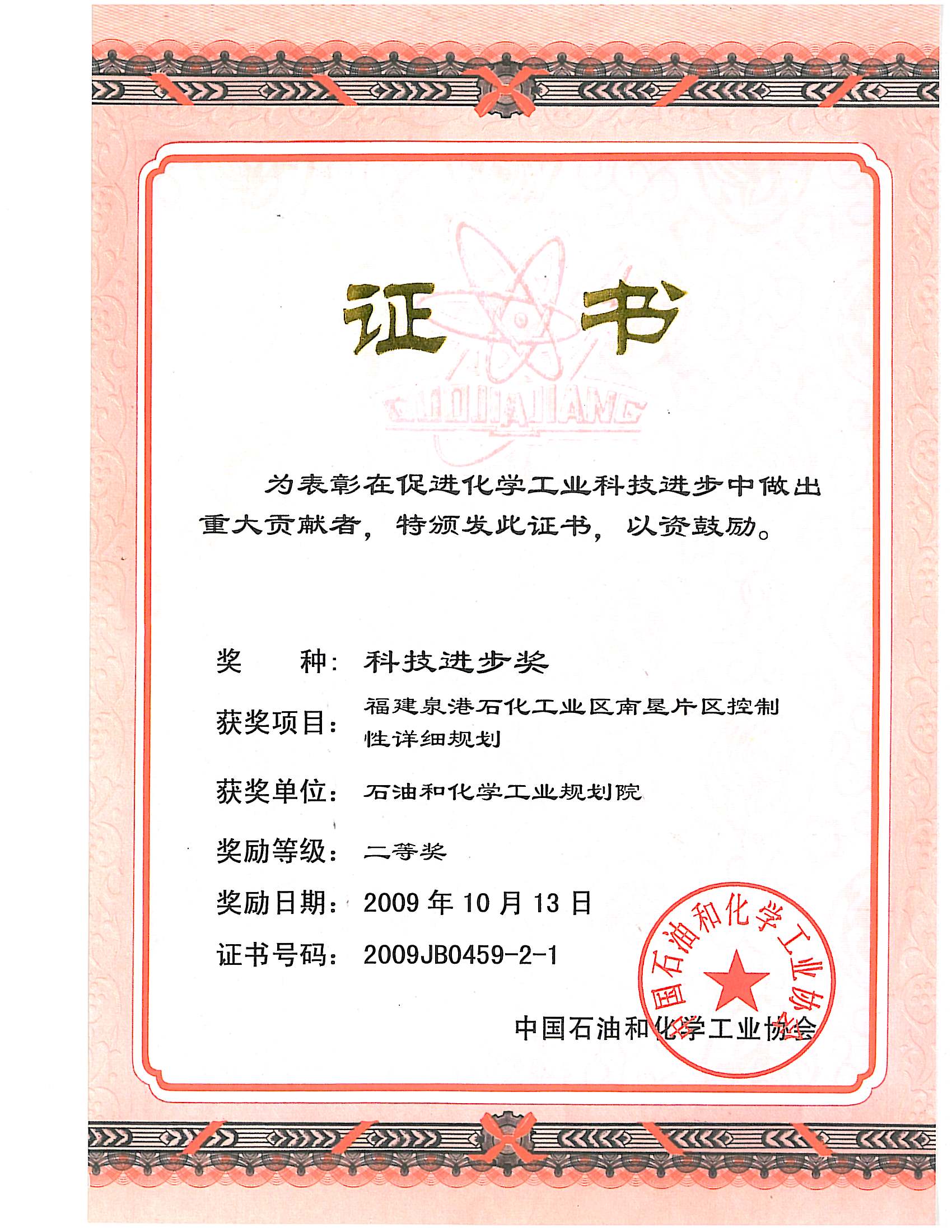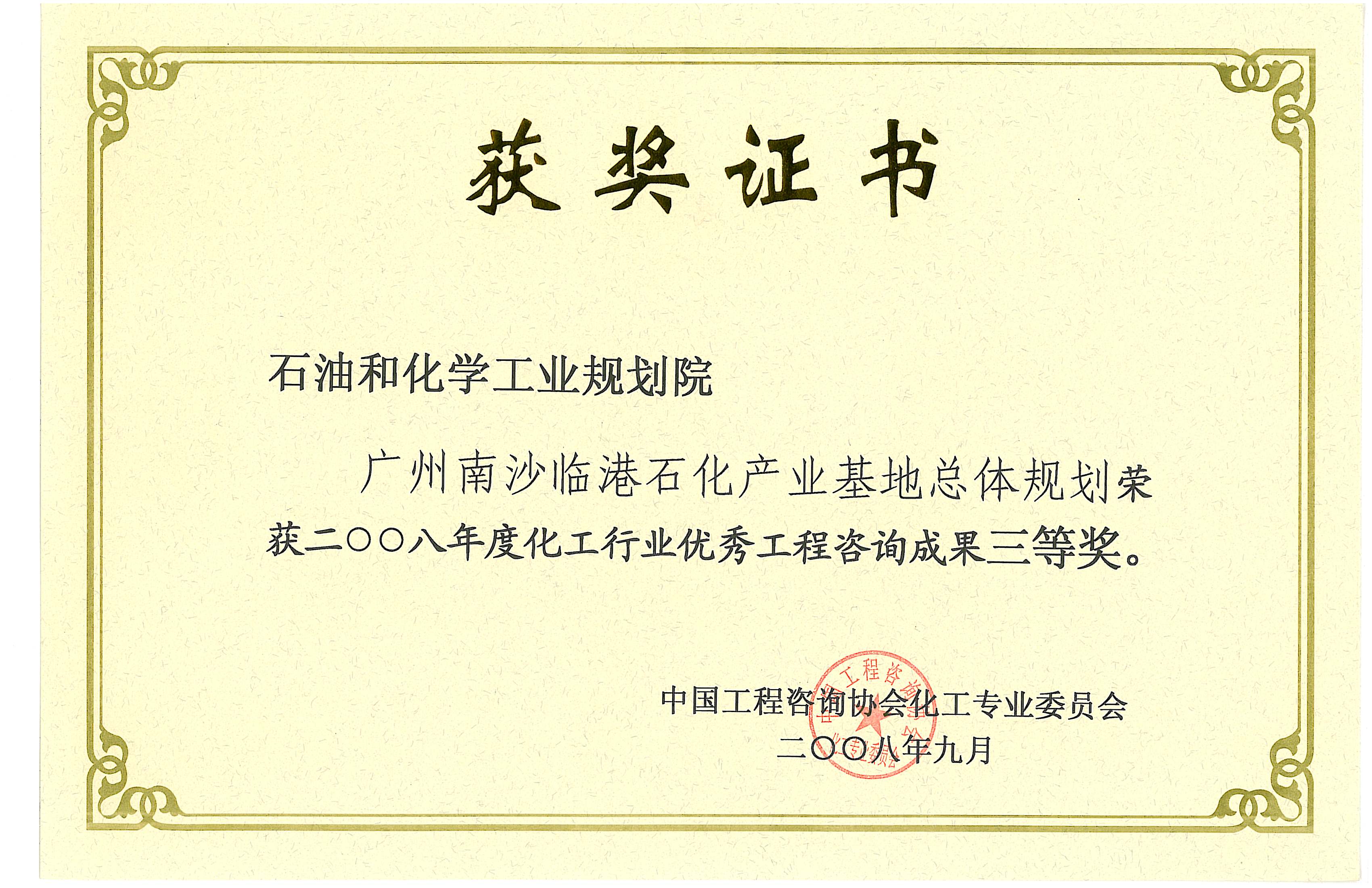 化工行業優秀工程咨詢成果三等獎(南沙)