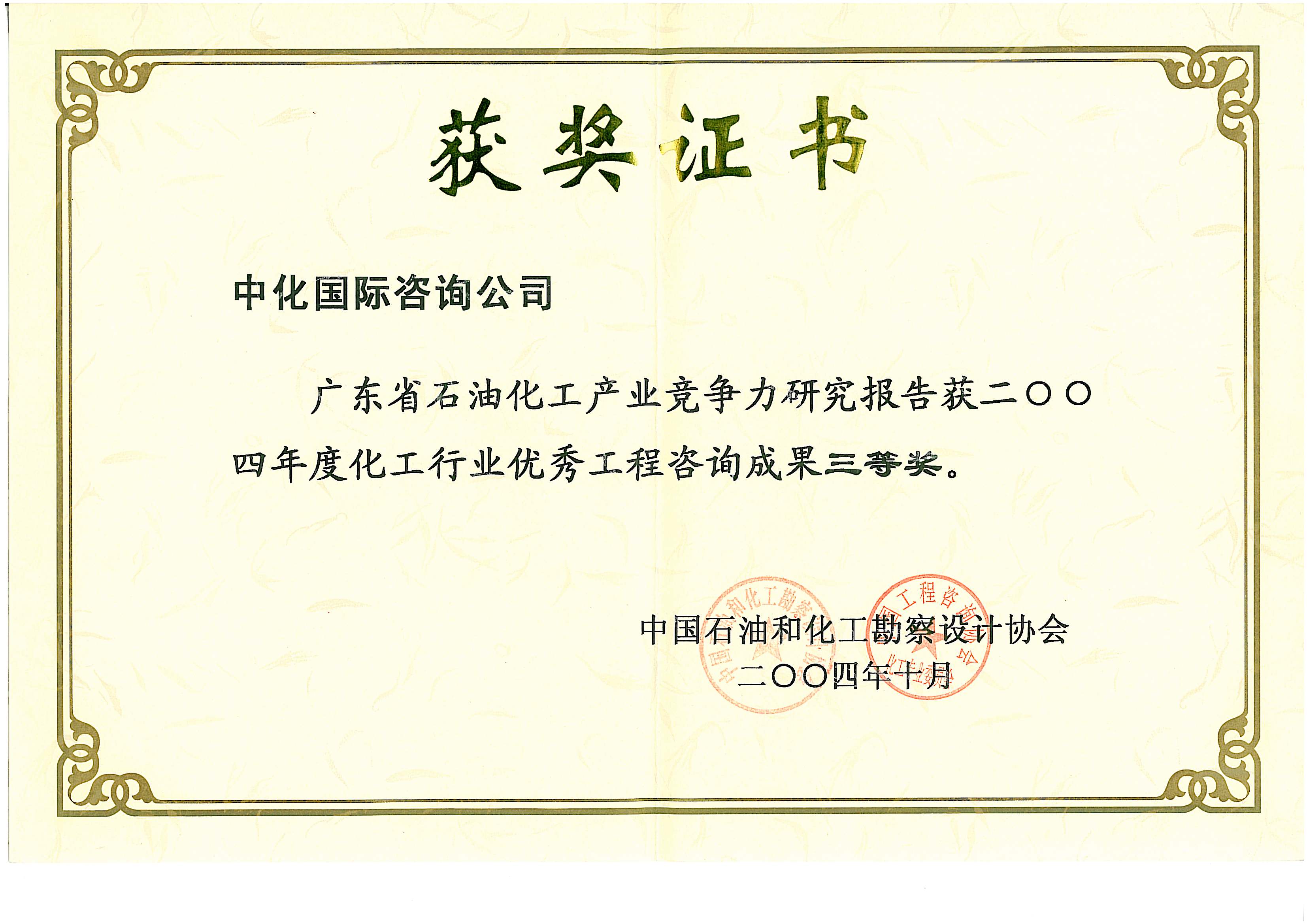 化工行業優秀工程咨詢成果三等獎(廣東競爭力專題)
