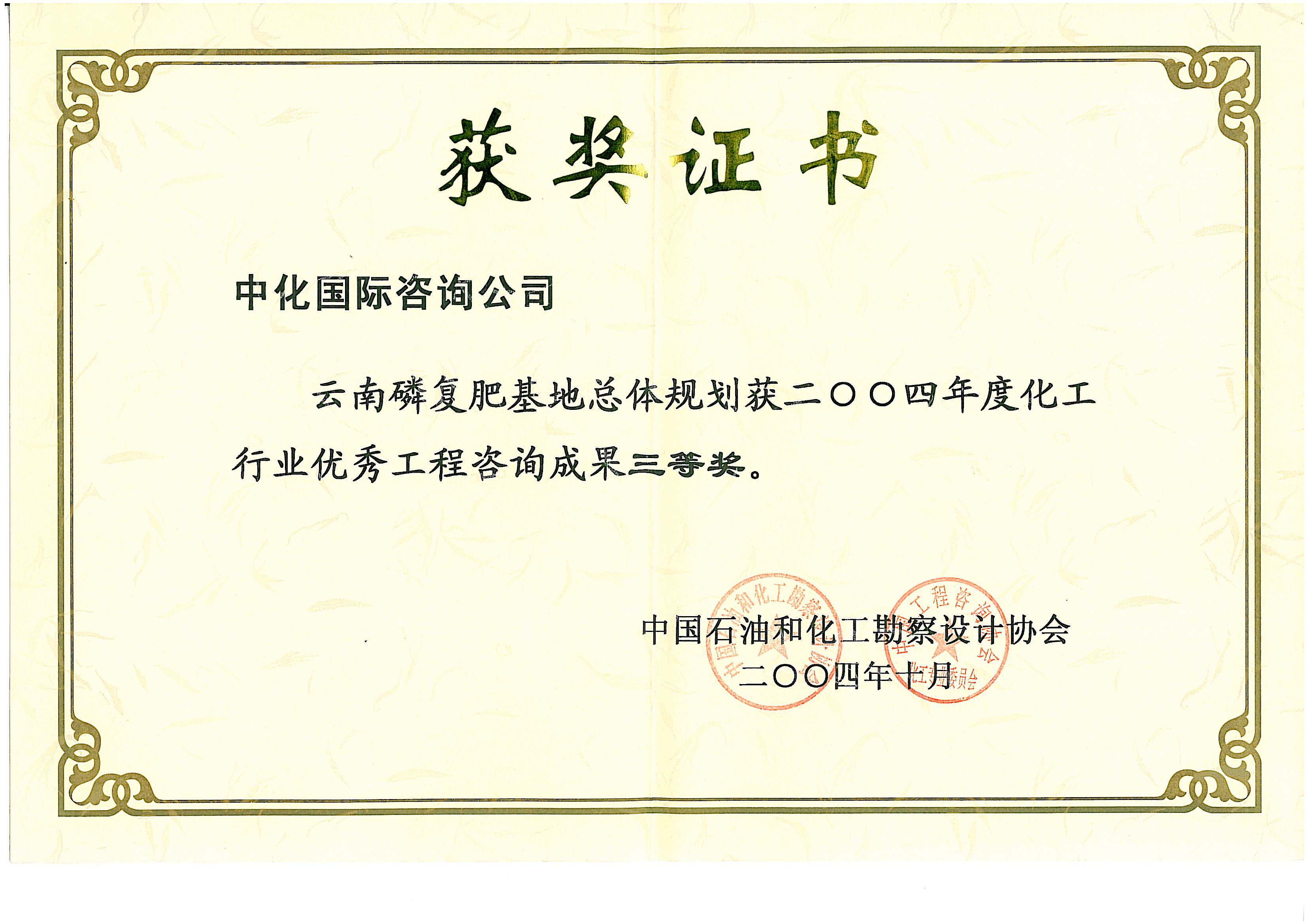 化工行業優秀工程咨詢成果三等獎(云南磷復肥)